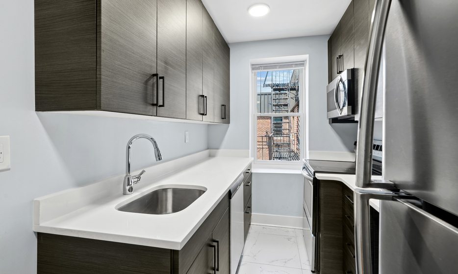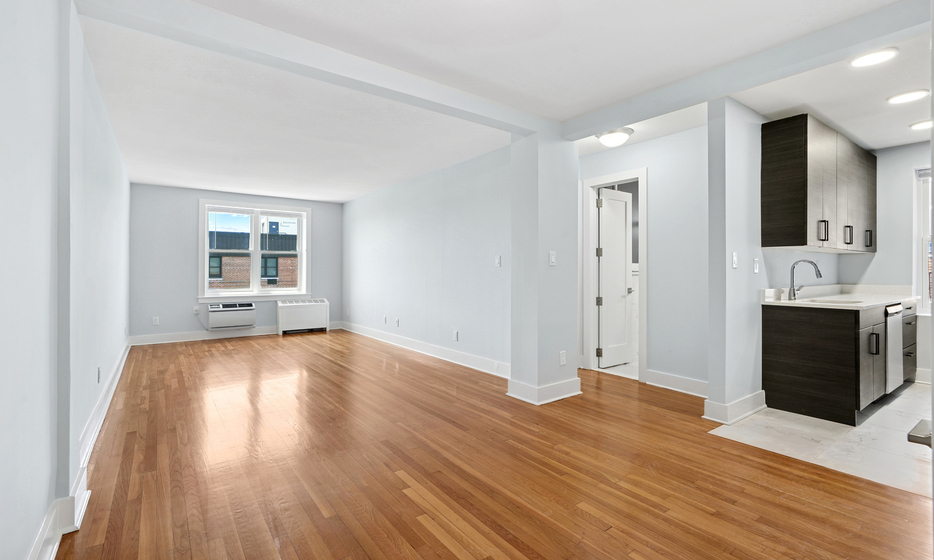 Renovated 1 bedroom, 1 bathroom apartment. This apartment features a renovated kitchen with caesarstone countertops, custom cabinetry, and stainless steel appliances.
