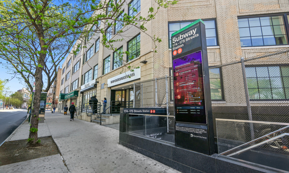 Concourse Plaza, located at 1780-1790 Grand Concourse, is a recently renovated mixed-use redevelopment in the Bronx. The property features over 243,000 square feet of exceptional retail, professional office, and medical office space with modern, sunlight-filled interiors. Concourse Plaza offers various floor plans, energy-efficient window curtains around the entire building, and exposed concrete walls and columns. Full floors best positioned for government, educational, and institutional users are available. Additionally, tenants benefit from hands-on and professional property management. The building stands directly above the 174-175th subway station, providing B and D line service and a 30-minute train ride to Manhattan, along with multiple convenient bus lines.