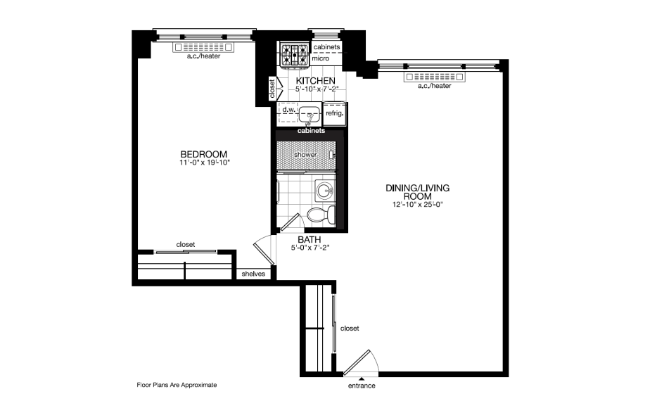 No-fee, 1 bedroom, 1 bathroom apartment located in Columbus Circle. Apartment features a separate windowed kitchen with stainless steel appliances, queen sized bedroom, and spacious floorplan spanning over 650 sq ft.