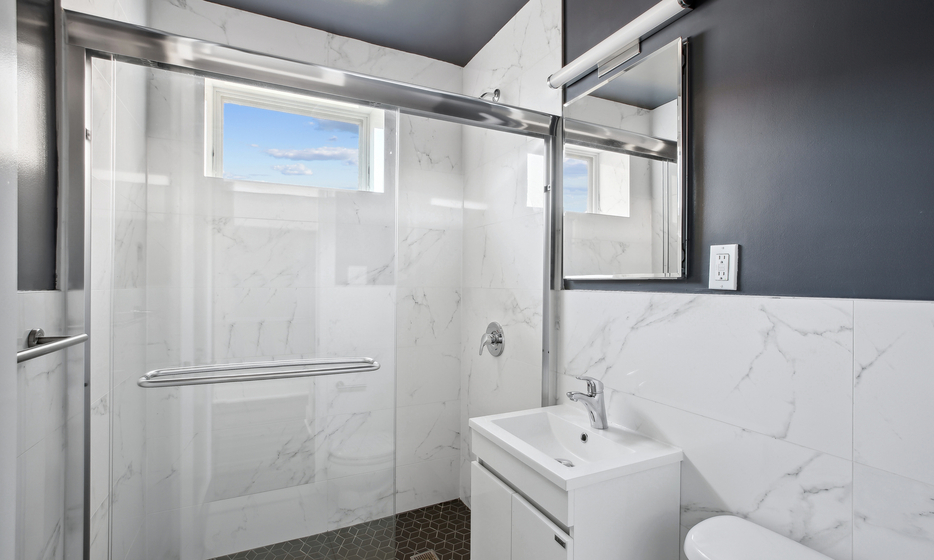 Renovated 1 bedroom, 1 bathroom apartment. This apartment features a renovated kitchen with white caesarstone countertops, custom cabinetry, and stainless steel appliances.