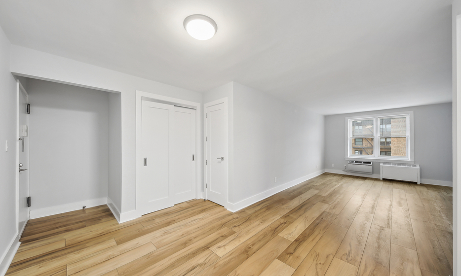 Renovated 1 bedroom, 1 bathroom apartment. This apartment features a renovated kitchen with white caesarstone countertops, custom cabinetry, and stainless steel appliances.